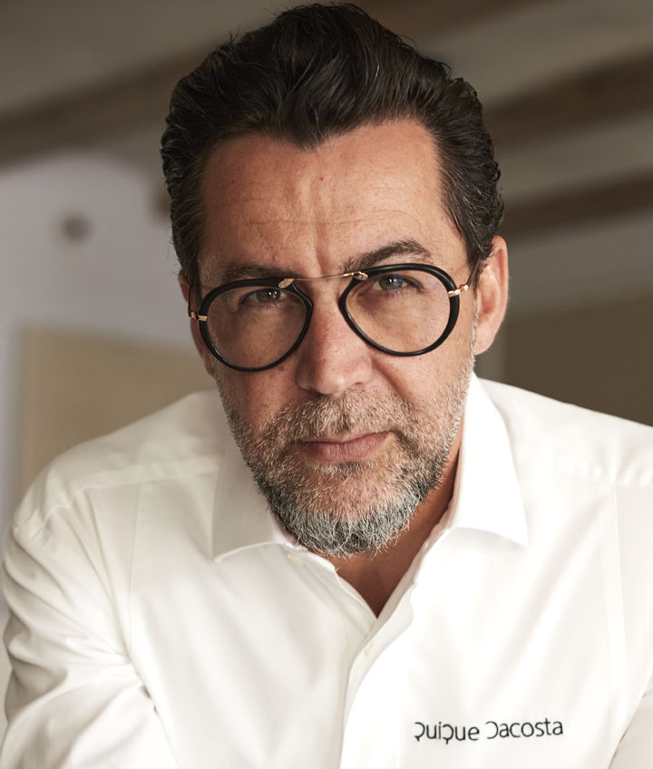 Quique Dacosta es un chef español con tres estrellas Michelin y reconocido como uno de los mejores cocineros del mundo. Su capacidad artística en la cocina y la belleza de sus platos le han llevado a ser distinguido con la Medalla de Oro al Mérito en las Bellas Artes.